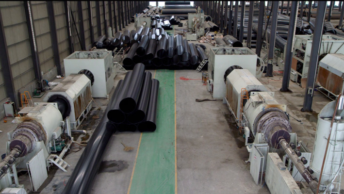 擁有聚乙烯管材生產(chǎn)線12條,采用先進(jìn)的螺旋模具擠出、真空定徑、噴淋冷卻、自動(dòng)切割等先進(jìn)生產(chǎn)工藝,年生產(chǎn)DN90-DN2000型聚乙烯外套管3萬噸